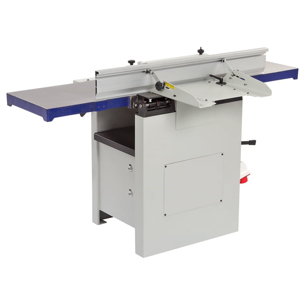 Фуговально-рейсмусовый станок Белмаш BELMASH JT-2 410/225-380 S182A предназначен для фугования и рейсмусования. Оборудование совмещает в себе все операции для калибровки доски. Конструкцией станка предусмотрено использование массивных чугунных деталей, что обеспечивает прочность, устойчивость и работу без вибраций. При рейсмусовании верхний модуль целиком поднимается и не мешает ни работе, ни стружкоудалению. Станок оснащен удобным эксцентриковым механизмом регулировки положения столов, подающего и принимающего. Входящий в базовое оснащение вал helical снабжен твердосплавными режущими вставками. Вал обладает высокой надежностью и не требует регулировки. За счет последовательного входа ножей в заготовку вал работает тише и с меньшими вибрациями. Частота вращения в 5500 об/мин способствует чистому резу. Для строгания по торцу или под углом от 90 до 45 градусов станок оборудован параллельным упором, который выполнен из жесткого алюминиевого профиля.