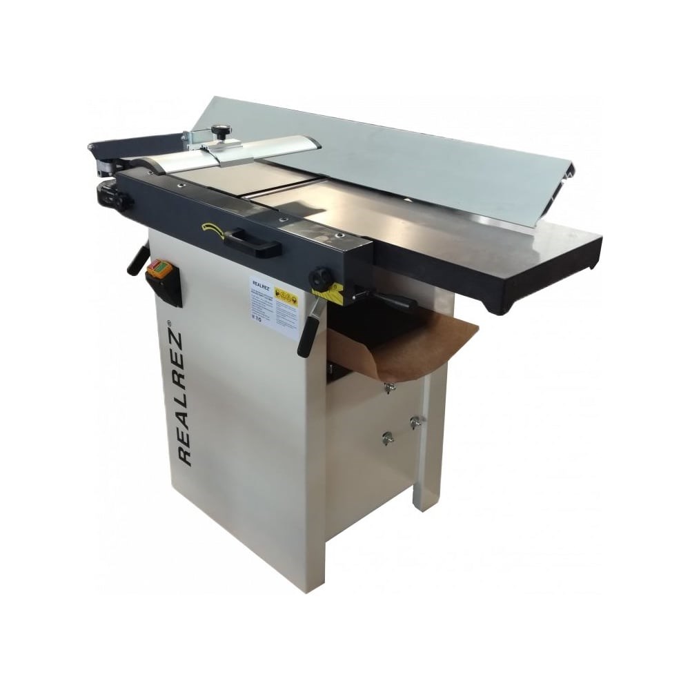 Фуговально-рейсмусовый станок предназначен для строгания и рейсмусования. Устройство объединяет все операции для калибровки доски. Станок сконструирован из цельнолитых чугунных деталей, что обеспечивает прочность, стабильность и отсутствие вибрации. Верхний модуль может быть полностью поднят, не мешая работе и удалению стружки. Станок оснащен эксцентриковым механизмом для удобной регулировки положения подающего и отводящего столов. Спиральный вал, входящий в базовую комплектацию, оснащен режущими твердосплавными пластинами. Этот вал надежен и не требует регулировки. Благодаря непрерывному входу ножа в заготовку, вал работает тихо и без вибрации. Скорость вращения 5500 об/мин обеспечивает чистоту реза. Для строгания вдоль кромки или под углом от 90 до 45 градусов станок оснащен параллельными упорами из жестких алюминиевых профилей.