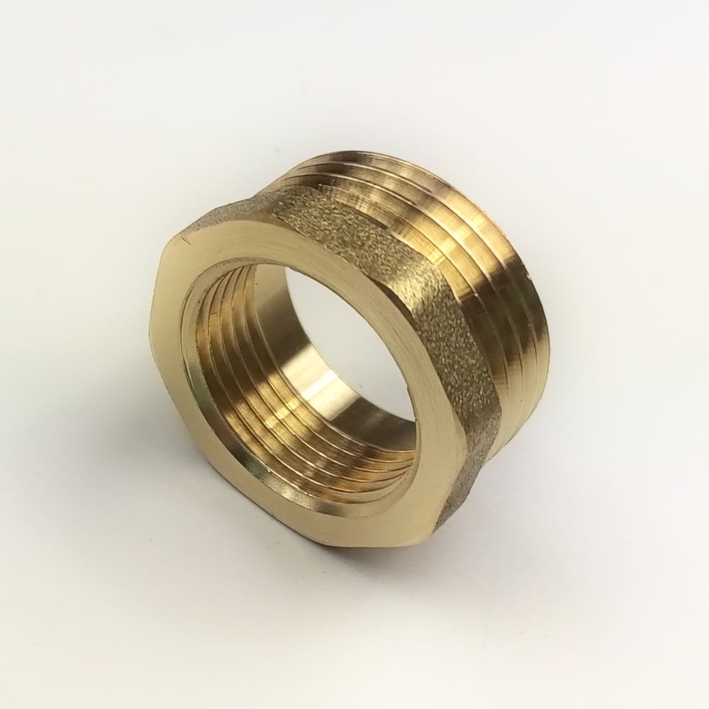 Футорка Brassco G1 х G3/4 Standart 4961827 - резьбовая латунная соединительная деталь с внутренней и наружной резьбой разного диаметра, используется для соединения труб разного диаметра на прямом участке водопровода. Наружная резьба 1 дюйм с шагом резьбы 2,309 мм, внутренняя резьба 3/4 дюйма с шагом резьбы 1,814мм. Деталь изготовлена из латуни марки ЛС 59-1.