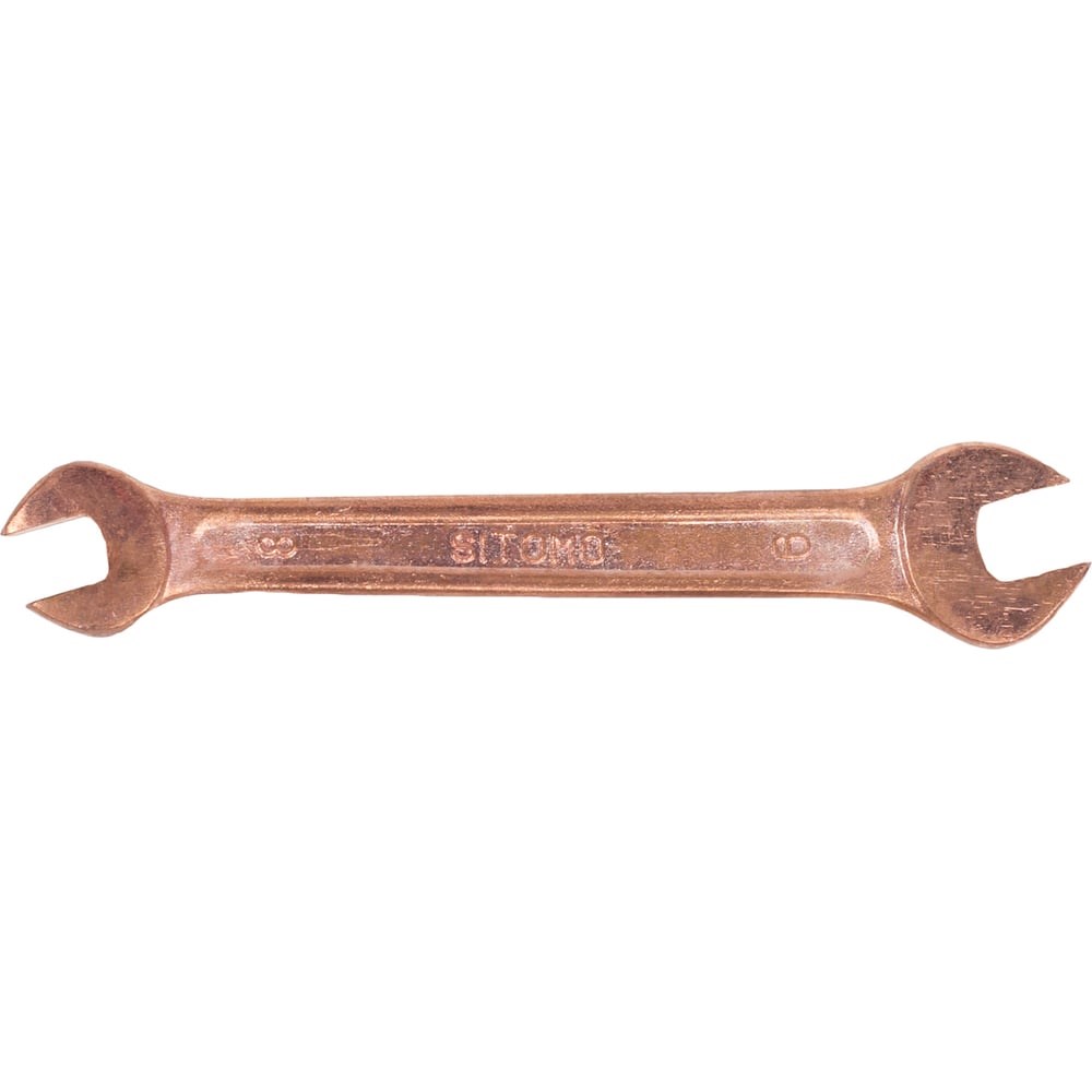Двусторонний гаечный ключ предназначен для работ с резьбовыми соединениями в процессе ремонтных и монтажных работ. Инструмент выполнен из высококачественной стали, благодаря чему отличается прочностью и долговечностью. Омедненное покрытие обладает повышенной устойчивостью к высокотемпературному воздействию случайной искры. Ключ может применяться на предприятиях с наличием потенциально опасных сред, а также в быту.