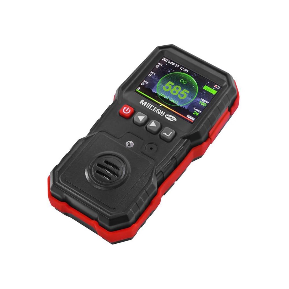 Газоанализатор МЕГЕОН 08008 к0000034417 – новинка в модельном ряду измерителей концентрации угарного газа в воздухе, в бытовых и промышленных зданиях и сооружениях. Имеет современный эргономичный корпус с силиконовой вставкой противоскольжения. Для нагрудного ношения прибора на задней стенке предусмотрена стальная прищепка с кольцом, которая обеспечивает надежное удержание, а также позволит закрепить анализатор на поясе. Все процессы отображаются на ярком цветном ЖК-дисплее. Данные могут быть записаны в память, которая позволяет сохранить до 120000 измерений. При этом обеспечивается удержание максимальных, минимальных и средних значений в автоматическом режиме. Три вида настраиваемой сигнализации включают в себя звуковое сопровождение, световую индикацию и вибрацию, которые осуществляют информирование при достижении концентрации одного из пределов тревоги. Одним из значимых преимуществ является возможность калибровки тремя методами по двум точкам. Питание осуществляется встроенным перезаряжаемым литиевым аккумулятором емкость 1800 мА/ч.
