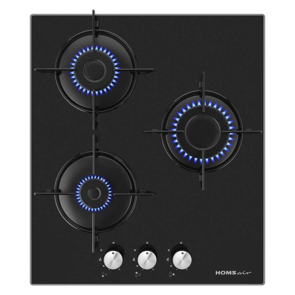 Газовая варочная поверхность имеет компактные размеры. За счет этого она идеально подходит для установки на небольших кухнях или в квартирах-студиях. Закаленное стекло черного цвета позволяет панели гармонично дополнять интерьер в стиле модерн. Модель имеет 3 конфорки, имеющие разную мощность и размер. Поэтому на варочной поверхности можно готовить самые разнообразные блюда. Для устойчивости посуды варочная поверхность оборудована стальными съемными решетками. Конструкция самих конфорок предусматривает экономное расходование газа во время готовки. Кроме того, они оснащены механизмом электроподжига, который позволяет обходиться без спичек для поджигания газа. Стабильная работа варочной поверхности возможна и от природного газа (метан), и от сжиженного (пропан-бутан).