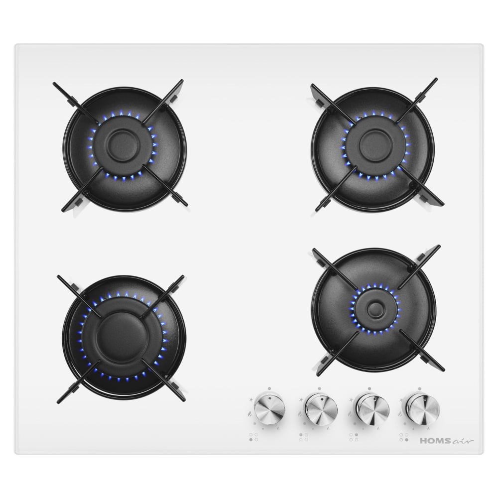 Газовая варочная поверхность предназначена для приготовления пищи. Стеклянная рабочая панель отличается устойчивостью к появлению визуальных повреждений, легкостью и простотой при последующем уходе. Модель оборудована стальными решетками, которые гарантируют надежную фиксацию посуды любого диаметра. Поворотные элементы управления обеспечивают быструю и удобную регулировку интенсивности нагрева, а также открывают доступ к функции электрического розжига. Повышенную безопасность при регулярной эксплуатации обеспечивает функция газ-контроль, что оперативно приостановит подачу газа при угасании пламени.