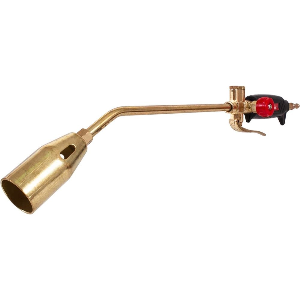 Газовоздушная горелка Дока ГВ-111-Р DK.1810.11873 предназначена для нагрева изделий и заготовок из черных и цветных металлов и их пайки, оплавления битумных рулонных материалов, сушки литейных форм, обжига старой краски, ремонта кабельных линий и др. работ. Основные параметры горелки соответствую требованиям ГОСТ 29091-91 "Горелки ручные газовоздушные инжекторные". В состав горелки входит: ствол, имеющий рукоятку, клапан, два регулирующих вентиля, ниппель; наконечник, имеющий стабилизатор, сопло, трубку соединительную, штуцер, гайку накидную. Горючий газ подается через ниппель к вентилю, клапану, дозирующему вентилю, обеспечивающему регулировку «дежурного пламени», и далее через сопло в стабилизатор, где происходит его смешивание с инжектируемым из атмосферы воздухом. При горении смеси образуется факел. Дополнительные технические характеристики: Наибольшее давление газа - 0,25 (2,5) МПа (кгс/см2). Материал - сталь Температура (экспл.) +5...+40°C. Исполнение - рычажная. Расход - 2,2 м3/ч. Max рабочая t +1200°C.