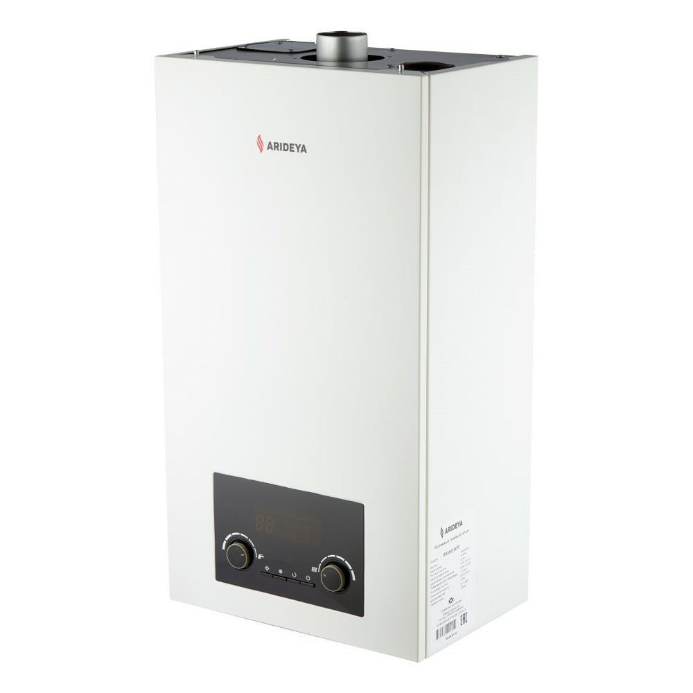 Газовый котел Arideya настенный ARD-07-000006 с закрытой камерой сгорания мощностью 30 кВт. Предназначен для отопления и горячего водоснабжения в жилых и промышленных помещениях Первичный теплообменник изготовлен из высококачественной меди. Вторичный теплообменник контура ГВС из нержавеющей стали, устойчивый к образованию накипи. Котел оснащен малошумным вентилятором (45 дБ), что обеспечивает тихую работу. На дисплее отражается вся информация о работе котла и коды ошибок.