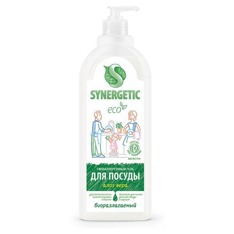 Гель для мытья посуды биоразлагаемый 1 л, SYNERGETIC "Алоэ", флип-топ, 103103/8