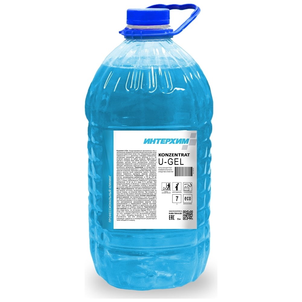 Гель-концентрат универсального средства очистки ИНТЕРХИМ Konzentrat U - Gel 5 л ПЭТ kn00155 - высокопенный гель для регулярной очистки всех типов моющихся водостойких поверхностей и оборудования, в т.ч. деликатных: глянцевых поверхностей, натуральных материалов, цветных металлов. Не оставляет разводов, не требует смывания. Концентрат, разбавление водой до 1:200.