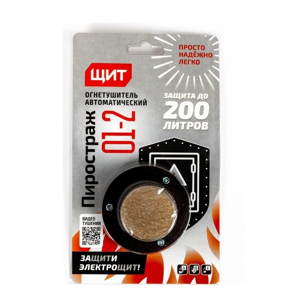 Пиростраж 01-2 генератор огнетушащего аэрозоля, применяемый для тушения пожаров классов А, В, С и Е по ГОСТ 27331-87.  Температура эксплуатации Пиростраж 01-2 от минус 50°С до плюс 60°С. Применение: Двигательные отсеки автотранспорта: легковые и спортивные автомобили, бронемашины, автобусы, грузовые автомобили, специальная техника (строительная, лесохозяйственная, горно-рудная, буровые установки, сельхозтехника); Двигательные, багажные, приборные отсеки, электрошкафы железнодорожного транспорта: локомотивов, электропоездов; а также морского и речного транспорта; Электрическое оборудование - радио- и телеаппаратура, компьютеры, мониторы, серверы, приборы, электрические шкафы, электрощиты, другое электрическое оборудование под напряжением до 35000 B; Вычислительные центры, кабельные шахты и тоннели, электрораспределительные и трансформаторные подстанции, другие помещения с электроустановками и электрооборудованием; Энергетическое и производственное оборудование и установки: двигатели, дизель-генераторы (ДГУ), в том числе в контейнерах, станки с ЧПУ и автоматические линии по обработке металла, дерева и других материалов; Складские контейнеры; Склады легковоспламеняющихся жидкостей и горюче-смазочных материалов; Технологические отсеки и помещения, в том числе фальшпотолки и подпольные пространства производственных помещений.