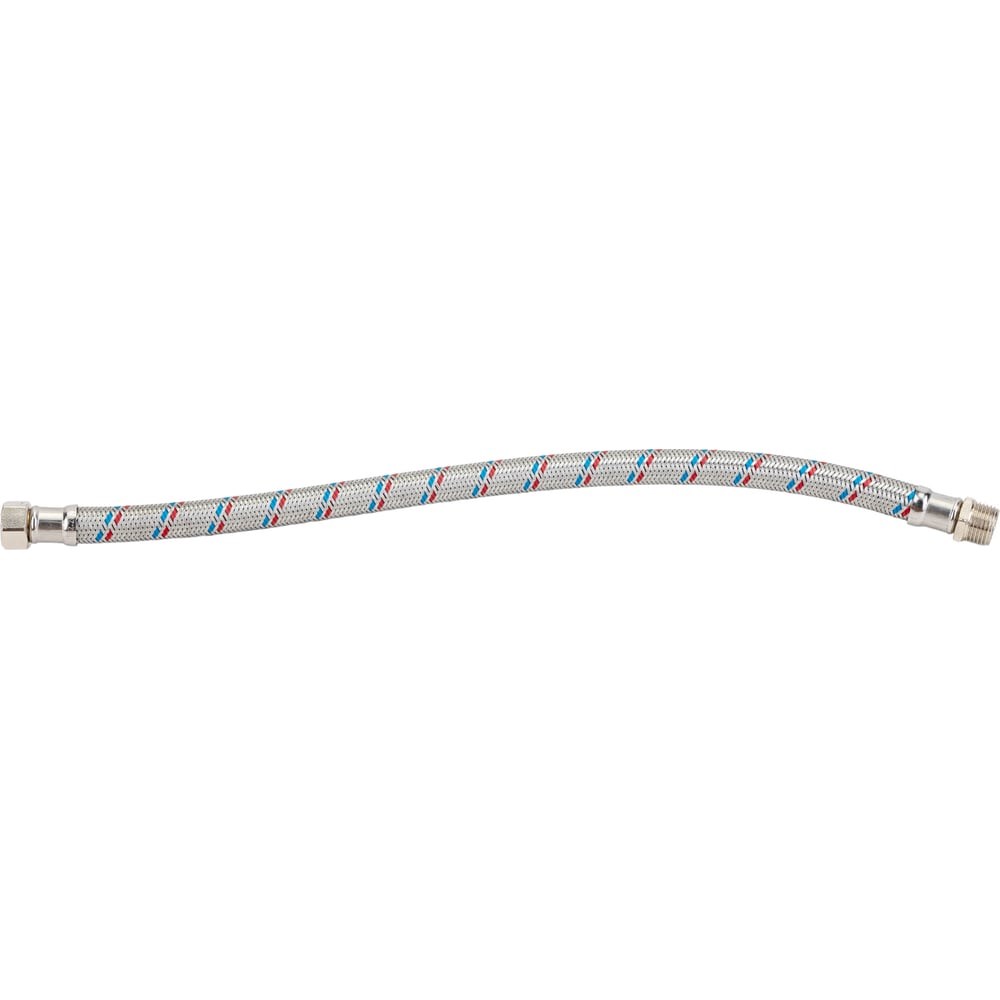 Подводка гибкая для воды AQUALINE Гигант 1/2 - вн-нар 1/2 - 50 см 04940 предназначена для присоединения к трубопроводам системы водоснабжения сантехнической арматуры, приборов сантехнического назначения и бытовых приборов. Возможно применение для насосов, гидрофорных блоков, уравнительных резервуаров и другого гидравлического оборудования. Внутренняя трубка гибкого шланга выполнена из этилен-пропиленового каучука СКЭП (EPDM), который покрыт оплеткой из стальных нитей. Концевая арматура (гайка/штуцер) изготовлена из никелированной латуни ЛС59-2 (CW617N).