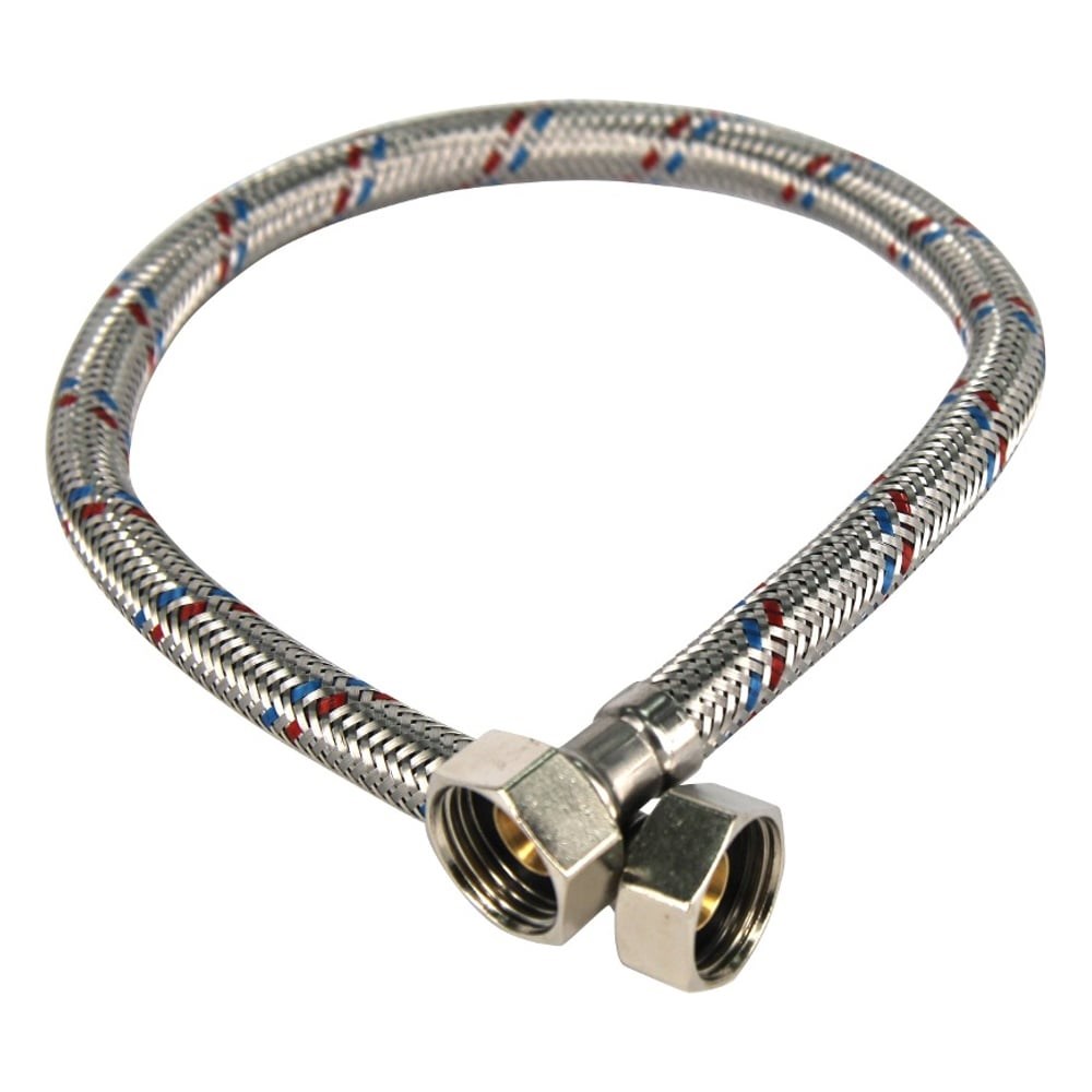 Подводка гибкая для воды ELKA с оплеткой из нержавеющей стали 1/2" х 30 см в/в, стальная гайка представляет собой резиновый шланг в металлической оплетке из нержавеющей стали и обладает высокими прочностными характеристиками. В процессе монтажа изделие можно сгибать и придавать необходимую форму. Подсоединяется гибкая подводка к точкам водозабора с помощью металлических накидной гайки и штуцера. Обеспечивает присоединение смывных бачков, смесителей, водонагревателей, стиральных и посудомоечных машин к трубопроводам холодного и горячего водоснабжения. Данное изделие отлично заменяет собой металлопластиковые трубы и за счет гибкости позволяет производить подключение к точкам водозабора в труднодоступных местах. Гибкая подводка для воды рассчитана на эксплуатацию при рабочем давлении 10 бар и температуре до +100°C.
