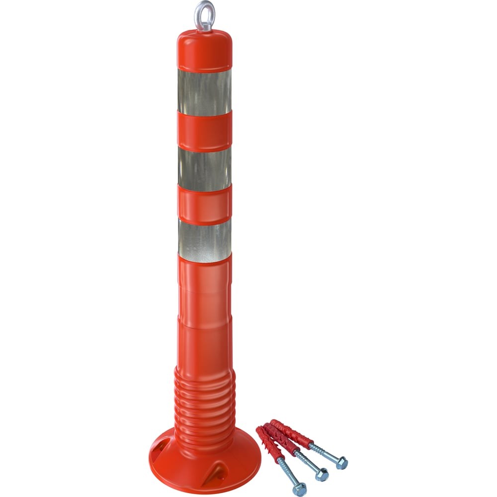 Гибкий парковочный столбик высотой 750 мм предназначен для организации ограждений на дорогах и парковках. Яркий оранжевый цвет привлекает внимание, обеспечивая высокую видимость в любое время суток. Сигнальные светоотражающие элементы добавляют дополнительную безопасность, особенно в условиях низкой освещенности.Изготовленный из термопластичного полиуретана, этот упругий столбик восстанавливает форму после наезда, что делает его надежным элементом дорожного ограждения. Наличие отверстия в верхней части позволяет установить фонарь или цепь, улучшая функциональность и видимость ограждения.Крепление для цепи предусмотрено в комплекте, обеспечивая дополнительную функциональность для создания ограждений.Основание столбика имеет круглую форму. В комплекте предусмотрен крепеж для фиксации на поверхности. Устойчивая конструкция обеспечивает стабильность даже при значительных нагрузках.Соответствие ГОСТ 32843-2014 гарантирует высокое качество продукции и ее соответствие всем требованиям безопасности.Этот дорожный упругий столбик идеально подходит для создания безопасных парковочных мест, не повреждает автомобиль при наезде благодаря мягкой и гибкой конструкции и создает четкие границы для водителей. Повороты и опасные участки дороги можно эффективно обозначить с помощью этих ярких оранжевых оградительных столбиков. Также столбик подходит для создания парковочных ограждений и разделения дорожных потоков.