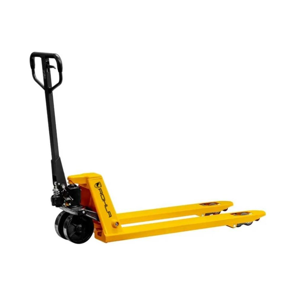 Гидравлическая тележка RohlaRhino г.п. 3 т, полиуретановые колеса RR3PDP имеет вилы с увеличенной толщиной металла, литой разборный гидроузел, обрезиненную рукоятку с усиленным основанием и регулируемые тяги.Дополнительно комплектуется вспомогательными подвилочными роликами и клапаном защиты от перегрузки, что делает работу с тележкой максимально простой и удобной.Ведущие колеса диаметром 180 мм из полиуретана и сдвоенные опорные ролики облегчают передвижение тележки с тяжелыми грузами и повышают плавность хода и легкость поворотов.