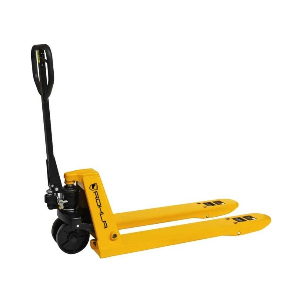 Гидравлическая тележка RohlaRhino г.п. 5 т, нейлоновые колеса RR5NDSN благодаря усиленному гидроузлу и увеличенной толщине металла вил (5 мм) имеет максимальную для данного типа тележек грузоподъемность 5000 кг. Комплектуется рукояткой с дополнительным усилением. Идеально подходит для использования на любых складах с высокими нагрузками. Ведущие колеса диаметром 200 мм из высокопрочного нейлона и сдвоенные опорные ролики увеличенного размера облегчают передвижение при работе с тяжелыми грузами, а дополнительные подкатные ролики обеспечивают лучшее преодоление преград.