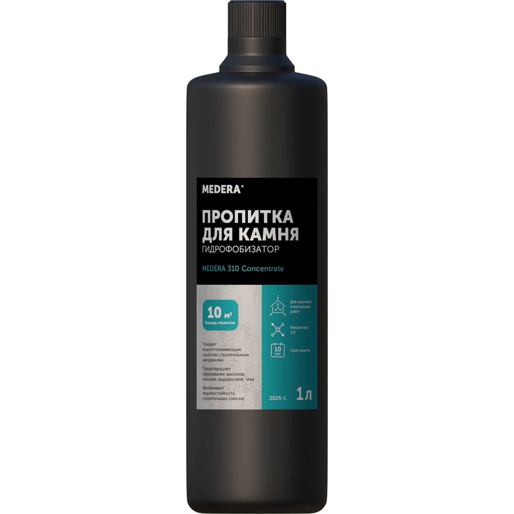 Гидрофобизатор MEDERA 310 Concentrate пропитка для камня, для наружных и внутренних работ, 1 л 2025-1 предназначен для строительства и ремонта. Подходит для обработки фасадов, цоколя и крыш зданий и сооружений, тротуарной плитки, пямятников и других объектов из минеральных пористых материалов. Предотвращает коррозию и преждевременное старение, поэтому продлевает срок службы поверхностей, что уменьшает расходы на содержание зданий. Благодаря жидкой консистенции препарат глубоко проникает в материал, поэтому защищает его от воздействия влаги и уличных загрязнений.