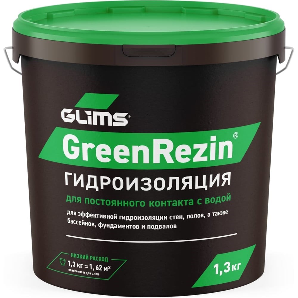Гидроизоляция герметик GLIMS GreenResin 1.3 кг О00006965 предназначен для эффективной гидроизоляции стен и полов в ванной комнате и туалете, на балконе, террасе, фундаменте, цоколе, в бассейне и фонтане открытого и закрытого типа с последующей облицовкой. Для внутренних и наружных работ. Состав обладает высокой адгезией к минеральным основаниям, металлам, дереву, гипсокартону и техническим видам пластика.