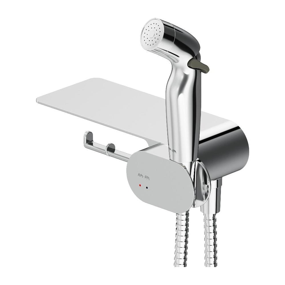Самый широкий спектр возможностей с многофункциональным смесителем от АМ.РМ! Смеситель оснащен прогрессивным картриджем, движение которого происходит в одной плоскости, делая управление максимально комфортным.Гигиенический душ зафиксирован непосредственно в самом смесителе, что экономит пространство. Чтобы включить смеситель, достаньте гигиеническую лейку и поворотом ее держателя включите устройство. При нажатии на специальную кнопку на самой лейке начинается подача воды.Весь продукт представляет собой удобную полочку, на которой можно разместить все, что необходимо вам под рукой. На интегрированном держателе можно размещать туалетную бумагу, а на крючке - полотенце.