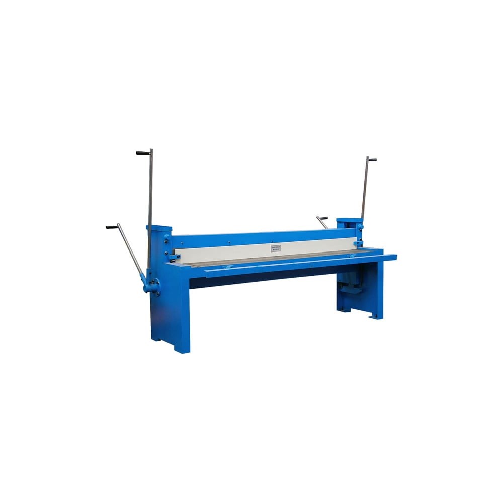 Гильотина MetalMaster MTG 1515 1,5 м 17639 предназначена для резки кровельного металла, алюминия, меди, латуни, пластика. Полимерные накладки прижимной балки надежно фиксируют заготовку, не повреждая материал. Рабочий стол имеет с двух сторон упоры и линейки для точного позиционирования деталей. Для поддержки длинных листов предусмотрен выдвижной передний упор. Ручной ограничитель глубины подачи листа оснащен миллиметровой разметкой. Перемещение упора бесступенчатое. Вертикальный ход ножа гильотины осуществляют поворотом ручки. Заточка ножа двусторонняя. Лезвие изготовлено из высококачественной легированной стали. Зазор между лезвиями предварительно выставлен на заводе и не требует дополнительной регулировки. Монтажные кронштейны облегчат транспортировку оборудования. Лотки, расположенные с обеих сторон подвижной балки, предусмотрены для хранения небольшого инструмента. Станок оснащен системой защиты от случайного повреждения пальцев.