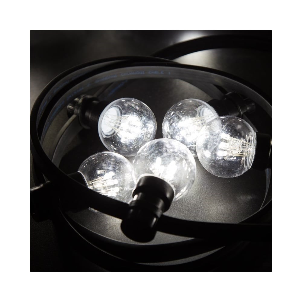 LED Galaxy Bulb String — эффектное светодиодное украшение, созданное на базе гирлянды линейки Белт-лайт. 30 лампочек белого свечения, уже установлены в патроны, поэтому изделие полностью готово к использованию. В каждой лампе по 6 светодиодов.Для подключения к сети предусмотрен 1,5-метровый шнур с вилкой. Провод находится в надежной изоляции из морозостойкого черного каучука.Вся конструкция защищена от влаги и пыли по стандарту IP65, поэтому изделие можно разместить как дома, так и на улице. Гирлянда длиной 10 метров станет прекрасным украшением интерьера или экстерьера.