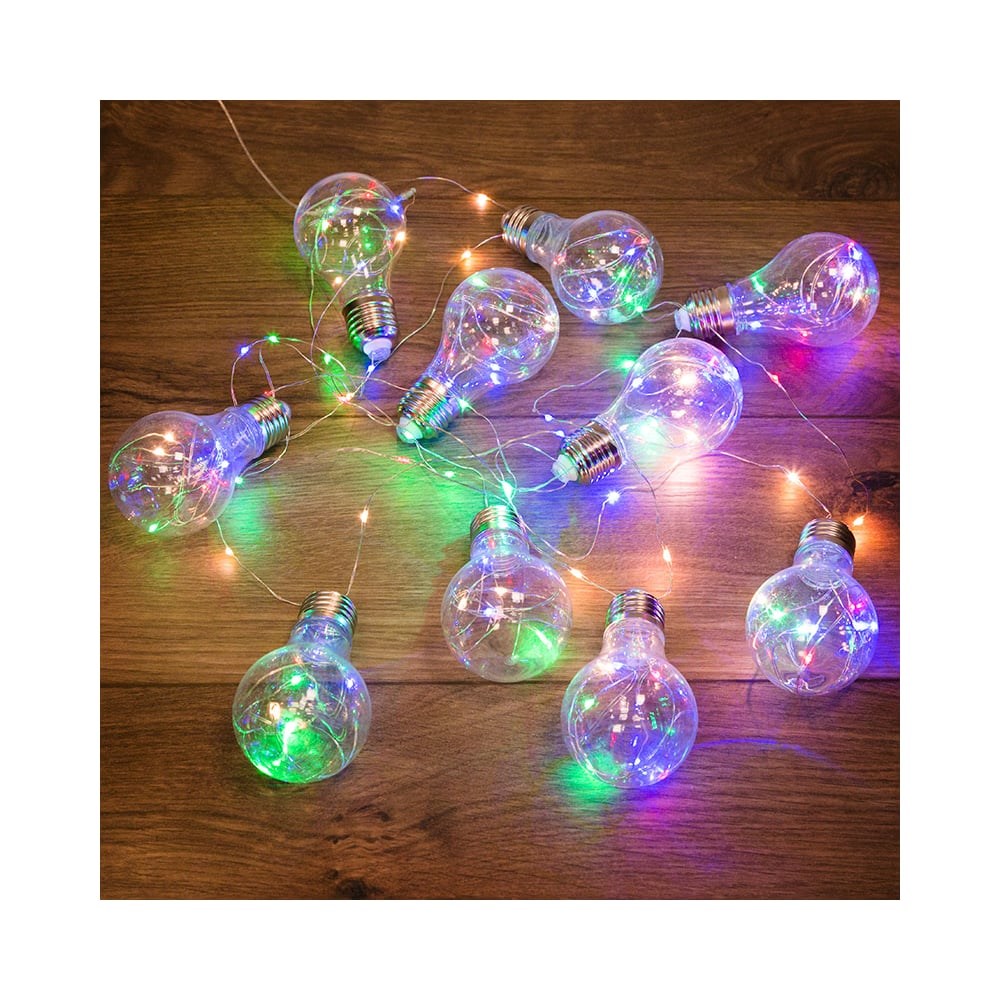 Гирлянда «Ретро-лампы» длиной 3 метра — необычное, стильное интерьерное украшение, которое разнообразит обстановку не только в новогодние праздники, но и в будни. Изделие представляет собой гибкий шнур, на котором находятся 100 диодов, светящихся разноцветными огнями. Дополнительно на кабеле расположены 10 насадок в виде аутентичных ламп накаливания с серебристым цоколем, эффектно подсвечиваемые диодами изнутри.Гирлянда не нуждается в подключении к стандартной электросети: питается от 3 батареек типа АА, что говорит об абсолютной безопасности использования.
