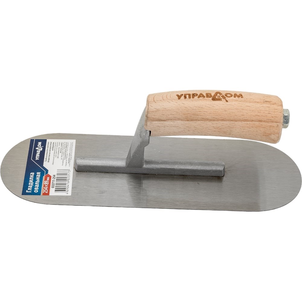 Гладилка Управдом стальная, овальная, с деревянной ручкой, 254x89 мм 03371 4100001838 предназначена для заглаживания строительных смесей. Полотно выполнено из качественной нержавеющей стали. Материал отличается надежностью и долговечностью. Эргономичная рукоятка обеспечивает комфортную эксплуатацию. Внимание! Изображение товара может отличаться от реального! Смотрите таблицу с техническими характеристиками!