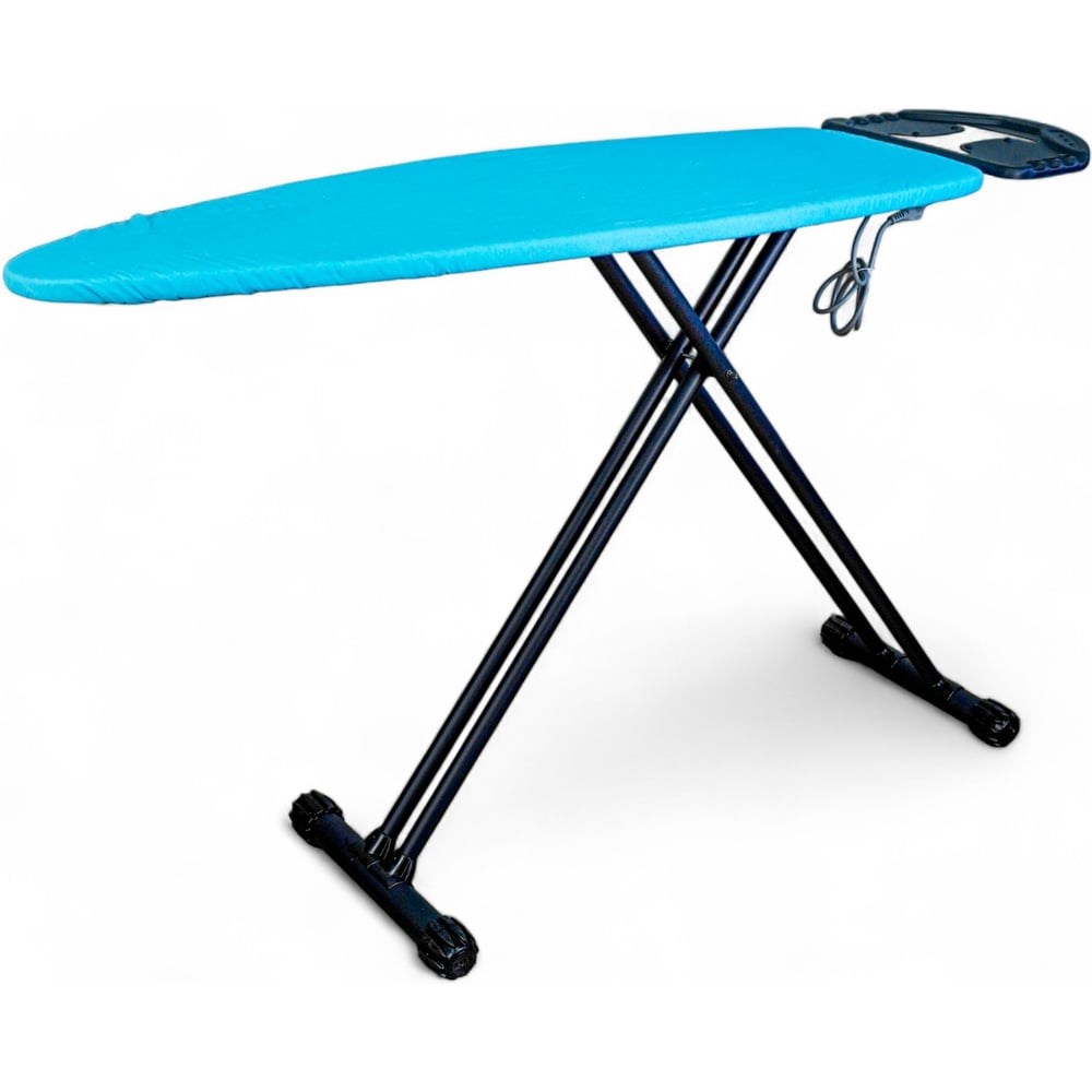 Kanat EP-710 Elips Pro — напольная гладильная доска, которая за 10 секунд раскладывается до широкого перфорированного стола 34 × 110 см и выдерживает 15 кг белья без прогиба. Металлическая поверхность пропускает пар с двух сторон, поэтому утюг скользит быстрее, а складки разглаживаются с первого движения . Плавная 8-ступенчатая регулировка высоты 64–92 см позволяет гладить стоя или сидя, не наклоняясь к ткани. Подставка под утюг 37 × 26,5 см покрыта электростатическим эпоксидным слоем и оснащена силиконовой огнеупорной вставкой — можно ставить прибор горячей подошвой вниз, не боясь пластика и чехла . Прочный хлопчатобумажный чехол держится без заломов благодаря фиксатору по периметру, а пластиковые накладки на ножках надёжно фиксируют доску на плитке, ламинате или ковре, не оставляя царапин. После глажки конструкция складывается до толщины 16 см и весит 7,7 кг — её легко убрать за шкаф или взять с собой на дачу . В комплекте: гладильная доска Kanat EP-710 и заводская упаковка.