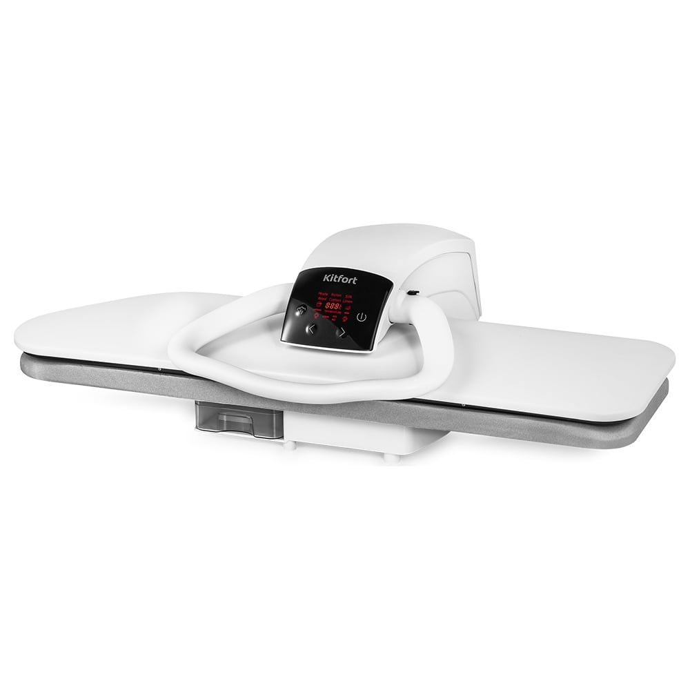 Гладильный пресс KITFORT КТ-2607 - современное устройство для глажки и прессования текстильных изделий, заменяющее утюг и отпариватель. Он увеличивает скорость работы и значительно облегчает процесс глажки за счёт большой рабочей поверхности, силы пресса и пара. Прибор состоит из мягкой гладильной доски и нагреваемой рабочей панели с антипригарным покрытием. Рабочая панель пресса размером 990х280 мм облегчает работу с большим количеством белья любой формы и размеров. Изделие обрабатывается горячим паром, а затем разогретая рабочая панель прижимает ткань с давлением около 50 кг, тем самым разглаживая её. Пар подаётся автоматически на 1 сек из отверстий верхней части пресса, когда она опускается. Чтобы открыть пресс, необходимо оба фиксатора, расположенных на ребре ручки, поднять вверх и надавить ручку вниз. Верхняя часть поднимается за ручку для её фиксации в открытом положении. За неё также удобно держаться, опуская рабочую панель для глажки. Прибор не делает затяжек на одежде и лишних складок, а деликатные ткани не деформируются. Пар выходит из паровых сопел рабочей панели благодаря работе помпы (водяного насоса). Чехол гладильный доски съёмный, его можно стирать при t°С не выше 40 °С.
