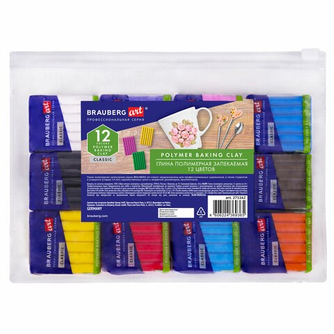 Глина полимерная запекаемая, НАБОР 12 цветов по 20 г, в пакете, BRAUBERG ART CLASSIC, 271162