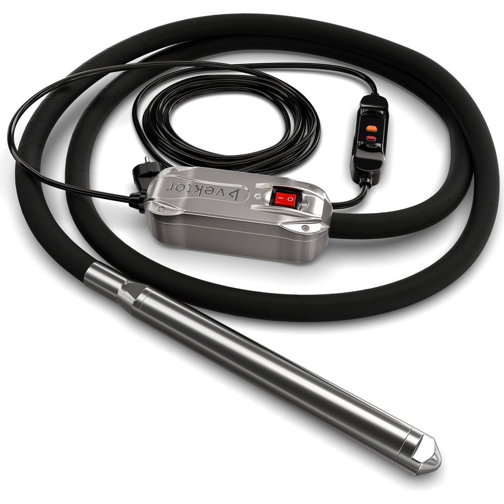 Глубинный вибратор с преобразователем VEKTOR EL50, 5 м 00-00003444 используется для уплотнения и равномерного распределения бетона при укладке. Имеет встроенный преобразователь частоты тока, позволяет работать с максимальной производительностью и увеличить скорость обработки жидкого бетона. А встроенный в вибрирующий наконечник асинхронный электродвигатель повышает долговечность и надежность оборудования. От утечки тока поможет встроенный УЗО.