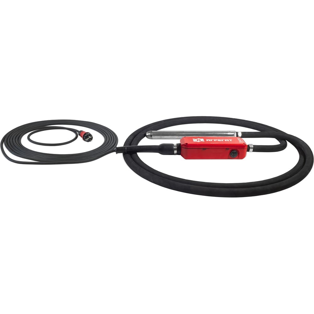 Глубинные высокочастотные вибраторы со встроенным преобразователем АГРЕГАТ серии СТП 42В предназначены для уплотнения бетонных смесей при укладке их в монолитные конструкции, а также при изготовлении бетонных и железобетонных изделий для сборного строительства. 12000 механических колебаний в минуту, создаваемые вибратором при его погружении в бетонную смесь, способствуют активному уплотнению бетона. Данный тип вибратора работает от электросети с напряжением 220 В, частотой 50 Гц и не требует дополнительного оборудования. Встроенный преобразователь частоты и напряжения преобразуют входящее однофазное напряжение 220 В частотой 50 Гц в трехфазное выходное напряжение 42 В частотой 200 Гц. Диаметр вибронаконечника 38 мм, подходит для небольших укладок с очень частой арматурой и узкой опалубкой.
