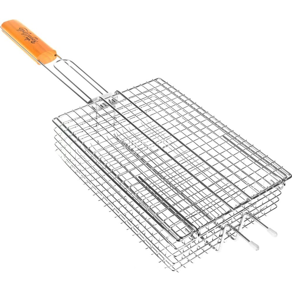 Глубокая решетка-гриль для мелких кусочков со съемной крышкой ROYALGRILL 25х18см 80-033 предназначена для приготовления на углях больших порций мяса, рыбы и овощей. Стальная решетка гарантирует длительный срок службы за счет устойчивости к высоким температурам и повреждениям. Деревянная ручка не дает обжечься в процессе готовки.