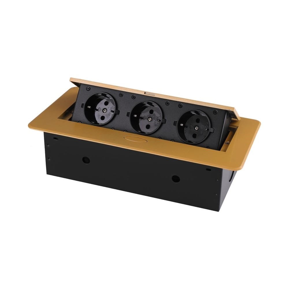 Горизонтальная выдвижная розетка ROCKETSOCKET 3 euro 16a, проводка, цвет золотой SHS017-G обладает особой прочностью и защитой от механических повреждений. Металлизированная отделка верхней декоративной крышки придает розетке современный внешний вид. Подходит для установки на рабочем столе дома и в офисе, на рабочей станции, в гостиничном номере, конференц-зале.Плавное открытие крышки происходит автоматически, после нажатия на кнопку спускного механизма. Закрытие происходит посредством механического давления на выдвинувшийся элемент крышки, до характерного щелчка фиксатора.Характеристики:Розетки Schuko 3 шт.Горизонтальная модель.Возможность монтажа в столешницу любого размера.Напряжение: 220-240 V - 50Hz.Максимальный ток: 16А (2,7 кВт).Степень защиты от воздействия окружающей среды: IP20.Степень защиты от поражения электрическим током: I.Гарантия - 12 месяцев.