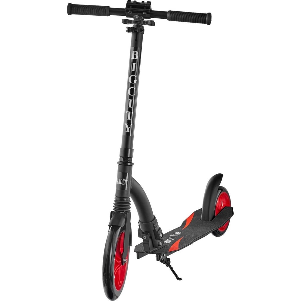 Городской самокат BRADEX колеса 230 мм, big city SF 0848 – маневренный самокат с большими колесами для динамичного катания по городу, комфортной повседневной езды в школу, на работу, активного отдыха в парке. Прочная складная конструкция обеспечивает отличную управляемость и устойчивость самоката. Удобная алюминиевая дека оснащена ребрами жесткости и противоскользящим покрытием. Максимальная нагрузка составляет 100 кг. Прогулочный двухколесный самокат имеет телескопический руль с грипсами из термопластичной резины. Он регулируется по высоте и подходит под рост райдера от 120 до 170 см. На руле есть зажим для фиксации ручек. Большие полиуретановые колеса 230/180мм, скоростные подшипники ABEC-7 дают отличный накат, маневренность для комфортного преодоления больших расстояний. В модели предусмотрена амортизация переднего колеса. Над задним колесом установлен стальной тормоз-крыло для контроля скорости движения во время катания. Городской самокат быстро складывается одним движением, поэтому его удобно переносить или перевозить в багажнике автомобиля. В комплекте имеется ремень для переноски, шестигранный ключ для сборки. Стильный городской самокат подходит в качестве подарка для начинающих и более опытных райдеров.