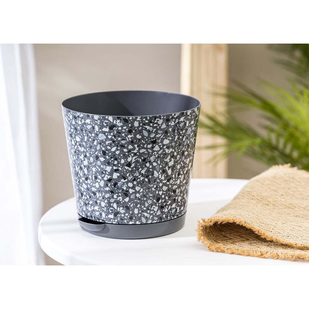 Горшок для цветов 2л диаметром 16см подходит для небольших растений. Мозаичные горшки линейки Stone Flower дополнят ваш интерьер, добавив ему изящества и благородства. Технология вплавляемой этикетки (IML) обеспечивает долговечность декора и его устойчивость к внешним воздействиям. Пластиковые горшки для цветов не затираются и не тускнеют. Прикорневой полив с использованием специального носика гарантирует не только удобство использования, но и обеспечивает регулирование поступления воды растению. Дренажная решетка способствует циркуляции воздуха и препятствует переувлажнению корневой системы.