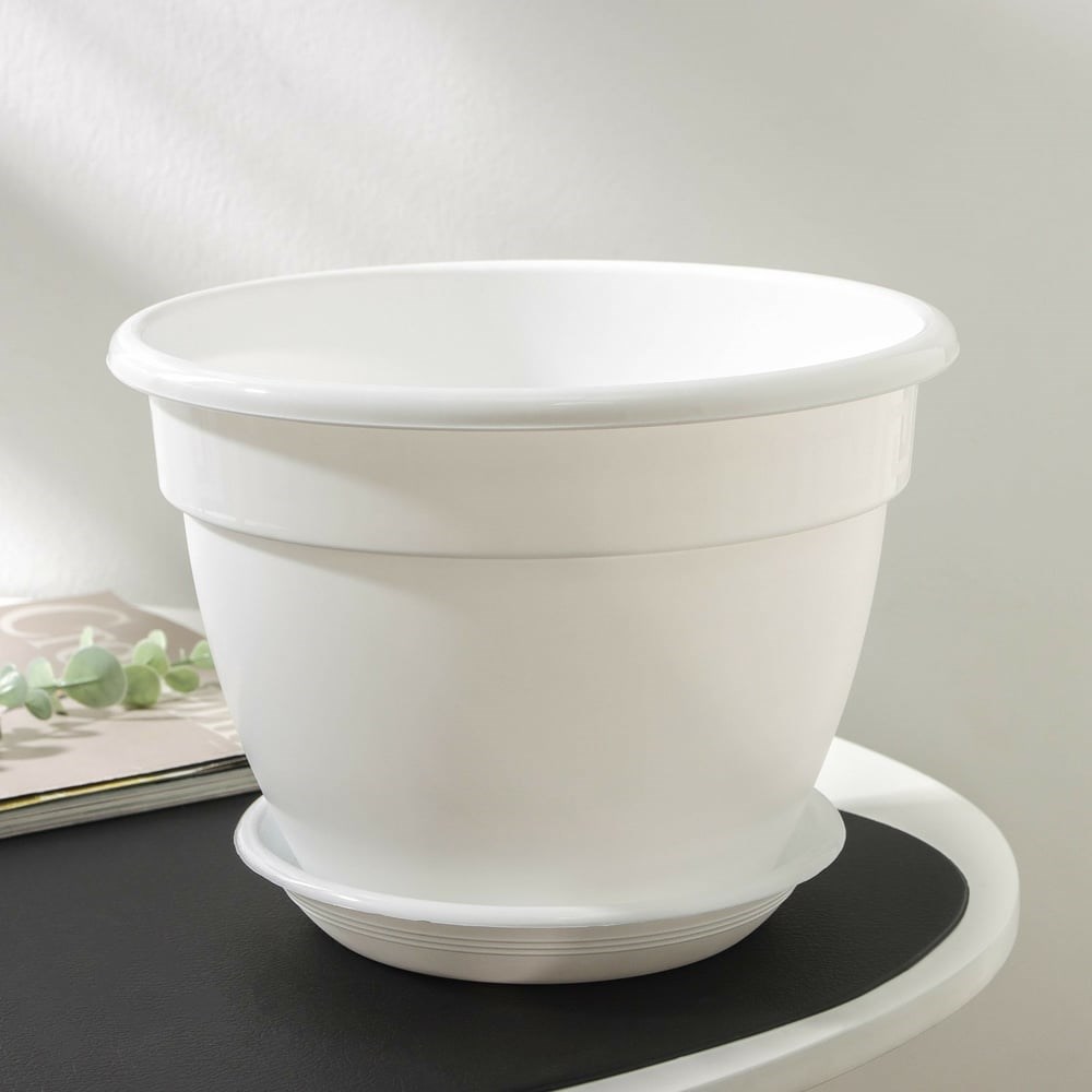 Горшок для цветов с поддоном СИМАЛЕНД Антик 3.6 л, 22 см, 17 см, белый 4047734 используется для выращивания растений, цветов и трав. Модель подойдет для оформления коммерческих объектов и жилого интерьера. Горшок выполнен из прочно пластика, что обеспечивает продолжительный срок службы.