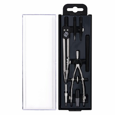 Комплектацияигольная вставка, карандашная вставка, кронциркуль, пенал с запасным грифелем, рейсфедерная вставка, ручка, циркуль