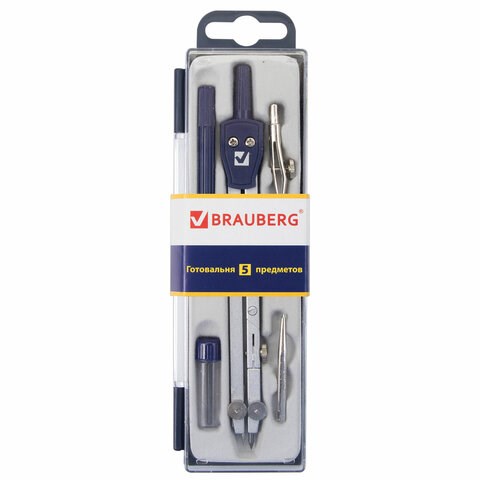 Готовальня BRAUBERG "Student Oxford", 5 предметов: циркуль 140 мм, 2 вставки, держатель, грифель, 210337