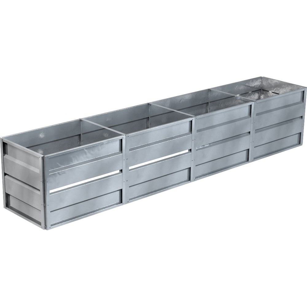 Готовая грядка Delta-Park GW 0.7х4 м, серебристая 30011_GW704Zn высотой 72 см позволяет выращивать урожай, не сгибаясь. В тёплых грядках урожай превосходит все ожидания. Используя бортики для грядок GW высотой 72 см, легко собрать грядку любого размера. Отсутствие колышков позволяет устанавливать их на любой твёрдой поверхности (бетон, дерево, асфальт). Средние грядки шириной 70 см могут использоваться как с одной, так и с двух сторон. Бортики для создания грядок средней ширины и грядок в теплицы.