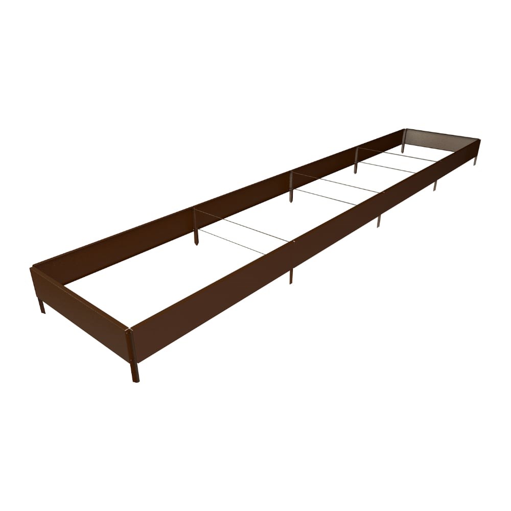 Готовая грядка Delta-Park GX 0.7х3.8 м, коричневая 30020GX_70370Br высотой 15 см подходит для выращивания большинства культур. Грядки получаются ровные и прослужат много лет, без дополнительного ухода. Установка и сборка грядки не составит труда. Основным преимуществом прямостенных грядок является то, что они не боятся коррозии и ржавчины. Такие грядки можно устанавливать как на открытом участке, так и в теплице. Из бортиков можно собрать любую длину грядки (рекомендуемый размер, не более 7,6 метров).