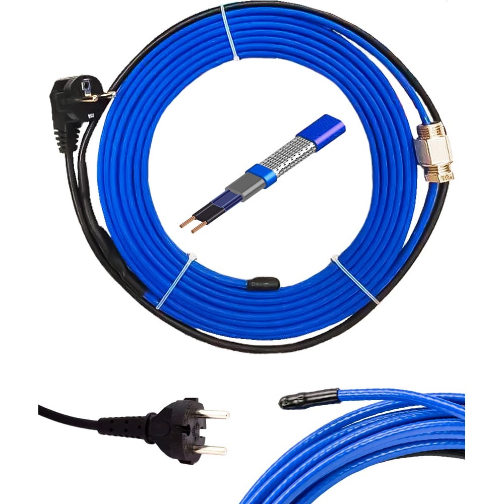 Готовый комплект саморегулирующегося нагревательного кабеля предназначен для защиты от замерзания внутри трубы . НЕ ПРЕДНАЗНАЧЕН для питьевой воды. Саморегулирующий морозоустойчивый нагревательный кабель для труб – идеальное решение, если необходимо обеспечить наружным трубам защиту от льда и холода: он справится с задачей даже в самые лютые морозы и навсегда устранит проблемы с промерзанием систем отопления, канализации и водоснабжения. Он работает без перебоев даже если происходят перепады напряжения, обеспечивает высокую надежность и эффективный внутренний обогрев, а также практически не расходует электроэнергию. Его можно использовать для водопроводных труб с диаметром до 50 мм – только в этом случае он обеспечит понижение температуры для участков с низкой теплоотдачей. При проведении монтажных работ допускаются перехлесты. Готовый к использованию комплект имеет фторопластовую оболочку, а значит кабель огнестойкий, не выделяет вредных веществ и может контактировать с пластиковыми и металлическими трубами. Такой кабель обладает мощностью 10 Вт на метр , отличается химически устойчивой изоляцией, предназначен для внутреннего монтажа и подходит под теплоизоляцию. Силовой и греющий кабель смонтированы при помощи Термоусадки и концевой герметичной капы (наконечник). Минимальная температура, при которой можно монтировать кабель с терморегулятором,-10 градусов по Цельсию, то есть выполнить установку внутри трубы разрешено даже зимой, причем без поиска обогревателей.