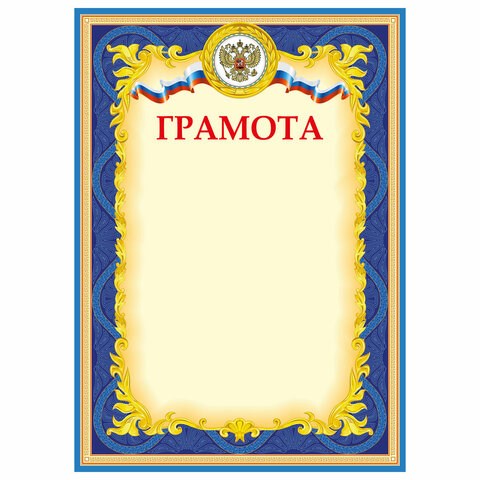 Изготовлена из плотной мелованной бумаги плотностью 200 г/м2. Составляется в свободной форме. Имеется изображение российской символики. Формат А4.