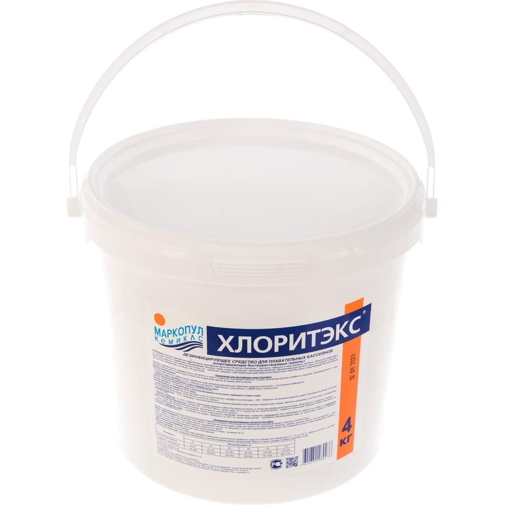 Препарат Маркопул Кемиклс Хлоритекс, 4кг ведро, гранулы М53 эффективно борется с грибками и бактериями, разрушает органические вещества. В составе отсутствует кальций, поэтому может использоваться при любой жесткости воды.