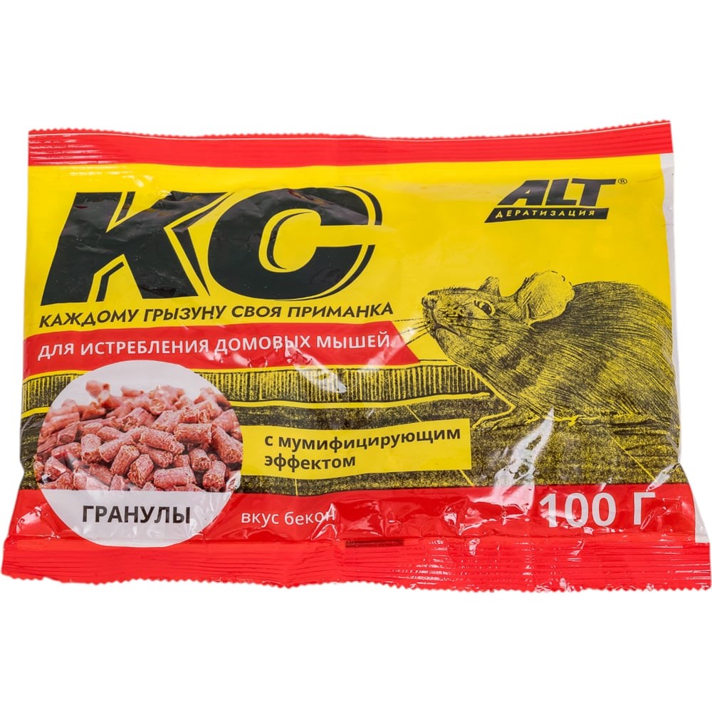 Гранулы от домовых мышей ALT Варат 100 г 4607112040113 – готовая к применению гранулированная приманка со вкусом бекона, окрашенная в яркий цвет. В местах, где доступ к приманке домашних животных и детей исключен, ее раскладывают в небольшие ёмкости или на подложках (листы плотной бумаги, картона, клеенки и т. д.), что позволяет быстро и аккуратно собрать ее остатки после окончания работы. Для повышения безопасности и обеспечения сохранности целесообразно раскладывать ее в укрытиях, прикормочных ящиках и других приспособлений.