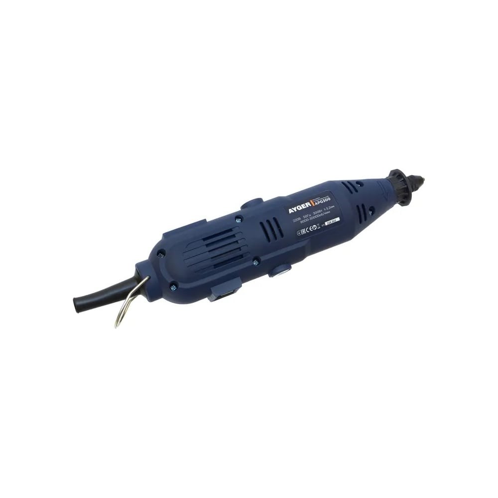 AYGER Машина гравировальная APG300. Регулировка частоты вращения для точной настройки под разные материалы. Фиксация шпинделя - быстрая замена оснастки. Малый вес снижает утомляемость пользователя. Легкий доступ к щеткам – удобство самостоятельного обслуживания. Богатая комплектация - можно сразу приступать к работе. Кейс для удобства хранения и транспортировки инструмента и принадлежностей.