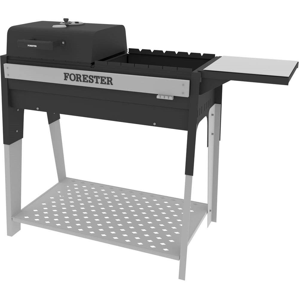FORESTER ГРИЛЬ с решеткой-гриль, насадкой для казана и защитной планкой предназначен для приготовления продуктов на углях. Гриль имеет рёбра жесткости, придающие конструкции дополнительную прочность и покрыт жаростойкой эмалью, выдерживающей температуру 800 ºC. Насадка для размещения посуды трансформируется в удобную полку размером 36х28,5 см для размещения продуктов. Регулятор поддува на крышке гриля и термометр позволяет управлять жаром в гриль-отсеке. Можно использовать как гриль с крышкой и мангал одновременно. Имеет разборную конструкцию, удобную для транспортировки и хранения. Нижняя полка размером 74х45 см и крючки для подвешивания удобны для хранения аксессуаров.
