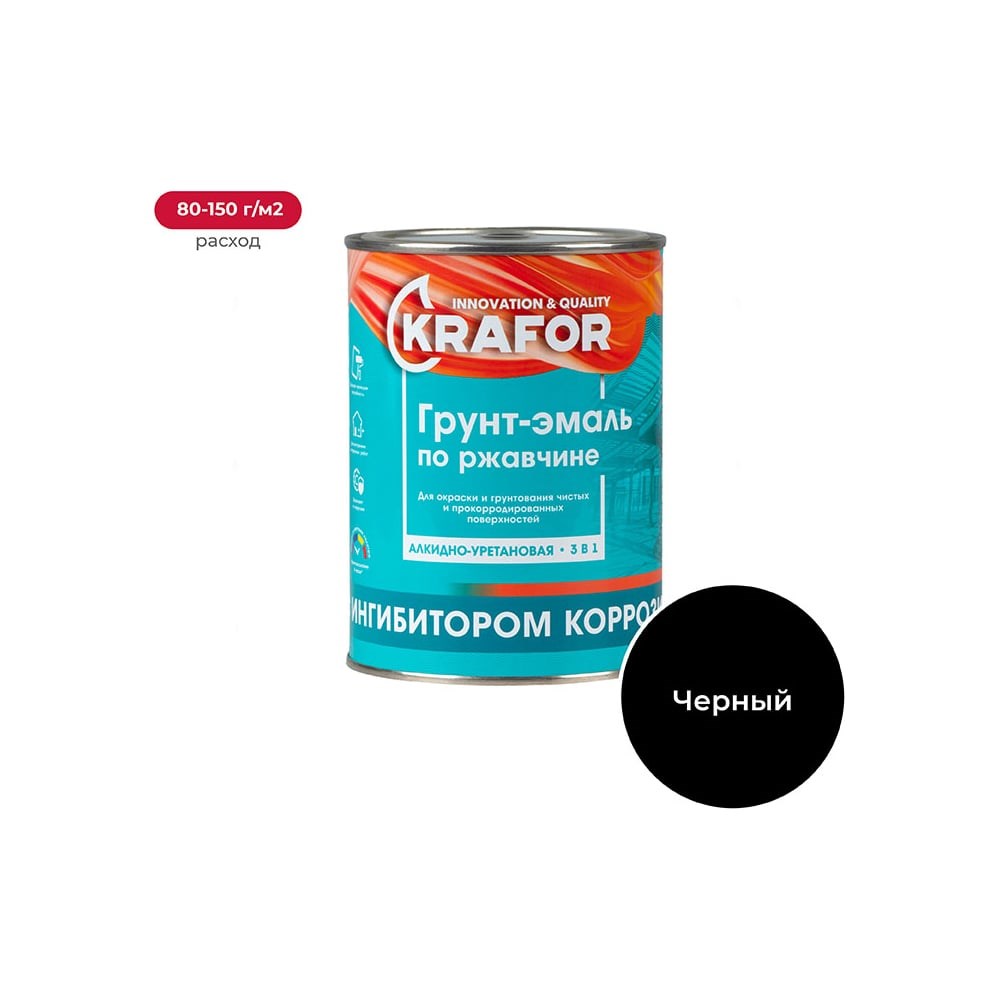 Применяется для наружных и внутренних работ, окраски и защиты металлических поверхностей, свободных от ржавчины или частично подвергнутых коррозии, со слоем плотно держащейся ржавчины толщиной до 100 мкм. Предназначена для преобразования ржавчины, грунтования и окраски чистых и прокорродировавших металлических поверхностей внутри и снаружи помещений всех типов зданий и сооружений. Образует глянцевое покрытие. Время высыхания: при температуре 20°С и нормальной влажности воздуха поверхность высыхает «от пыли» до 8 часов. Расход: на однослойное покрытие составляет 80-150 г/м2 в зависимости от цвета и способа нанесения. Срок годности: 540 дней. Черный Грунт-эмаль по ржавчине Готова к применению, сочетает в себе свойства преобразователя ржавчины, антикоррозийного грунта и декоративной эмали. Легко наносится, обладает хорошей растекаемостью и высокой кроющей способностью, морозостойкая. Применение грунт-эмали значительно упрощает подготовку поверхности перед окрашиванием и удешевляет технологию создания антикоррозийного покрытия. Сырьевые компоненты, входящие в состав грунт-эмали, действуют комплексно: преобразуют ржавчину в прочный защитный слой, препятствуют дальнейшему возникновению подслойной коррозии, образуют на поверхности металла прочное атмосферостойкое декоративное покрытие.