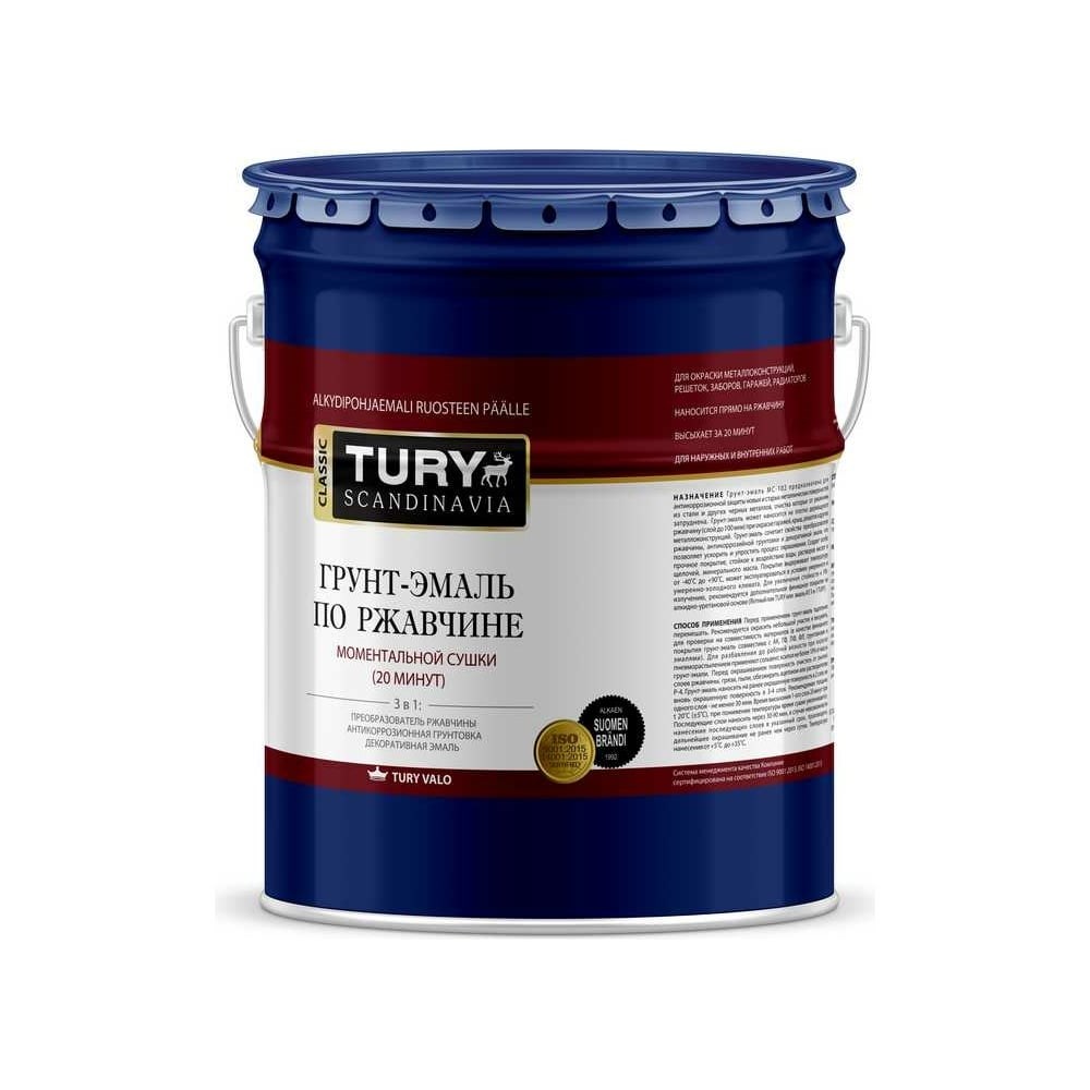 Краска по металлу TURY МС-102 (серая RAL 7040; 11 кг) T1-00007195 применяется для антикоррозионной защиты новых и старых металлических поверхностей из стали и других черных металлов, очистка которых от ржавчины затруднительна. Допускается нанесение на плотно держащуюся ржавчину (слой до 50 мкм).Грунт эмаль по ржавчине 3 в 1 идеально подъодит для окраски гаражей, крыш, решеток и других металлоконструкций. Краска для металла TURY включает в себя: преобразователь ржавчины, антикоррозионную грунтовку, декоративную эмаль. Образует водо- и атмосферостойкое покрытие, наносится прямо на ржавчину.