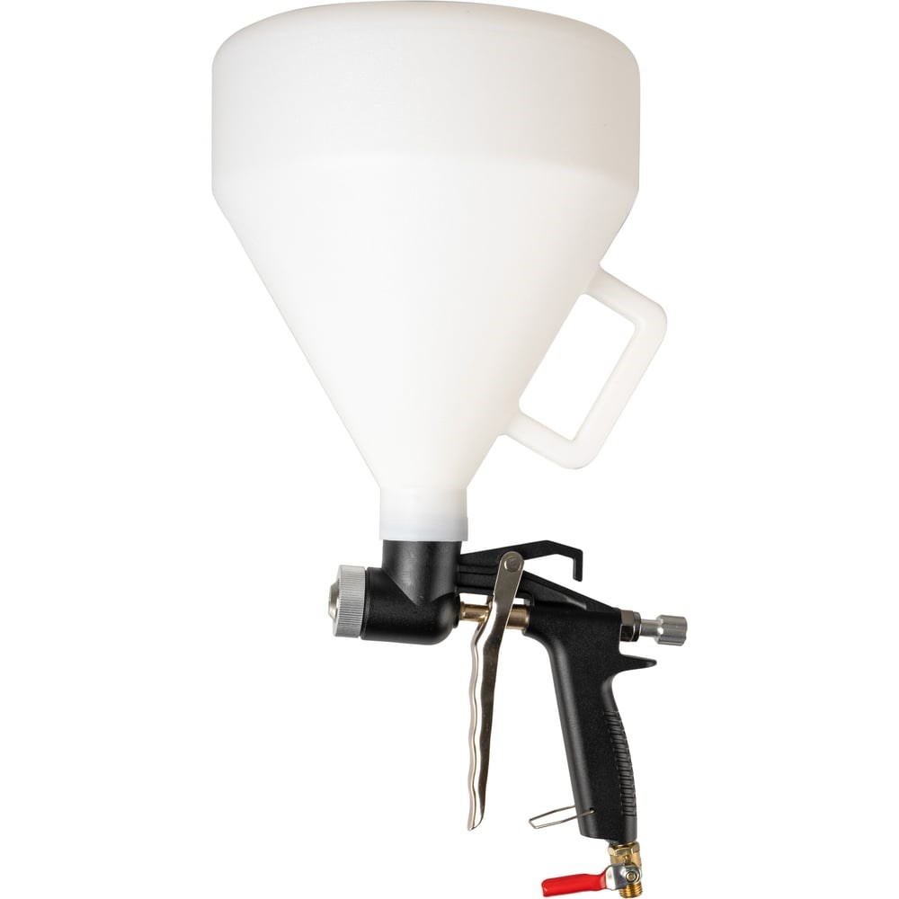 Грунтовочный краскопульт ARMA 4,6,8 мм, 3.5-5 атм, нейлоновый бак FR-301 используется для нанесения штукатурки, декоративной штукатурки, жидких обоев (отдельных разновидностей) густых, фактурных красок, лаков, мозаичных красок, мультиколорных красок. Грунтовочный пистолет легко наносит смеси из жидкой пробки, в том числе некоторых видов мраморной крошки. Диаметр сопел регулируется под различные диаметры фракций, а также для достижения необходимого результата напыления смесей. Пистолетом можно нанести грунты, эмали, а также и фактурные материалы, в том числе и шпатлевки. Грунтовочный пистолет пневматический применяется при отделочных работах для нанесения материалов с использованием мраморной (минеральной) штукатурки, жидких обоев, тяжелых красок, штукатурок, шпатлевок. Пистолет (в отличие от работы вручную) вбивает смесь в стену под большим давлением, что гарантирует отсутствие пор и полостей, слой получается плотный и однородный.