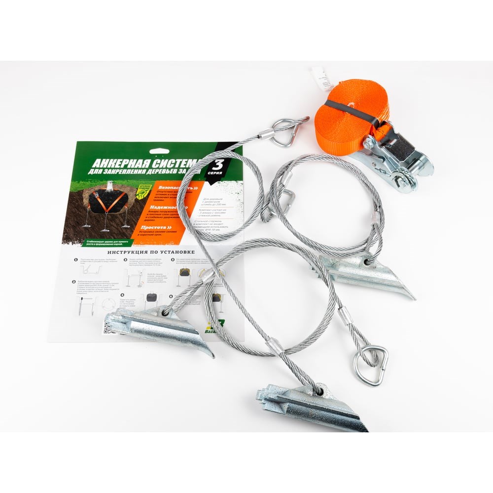 Анкерная система для закрепления деревьев за ком ДТРД Серия 3 БП-00003150 идеальный выбор в ситуациях, когда применение растяжек невозможно или нежелательно – например, на игровых площадках или газонах. Анкерная система, разработанная специально для того, чтобы прочно удерживать корневой ком в земле, полностью скрыта под поверхностью. Комплект используется для закрепления саженцев и крупных деревьев, виноградников, септиков, ёмкостей и колодцев. Стальной стержень в комплект не входит. В качестве «толкателя» рекомендуется использовать арматуру диаметром 16-18 мм, длиной 1.5-2 м.