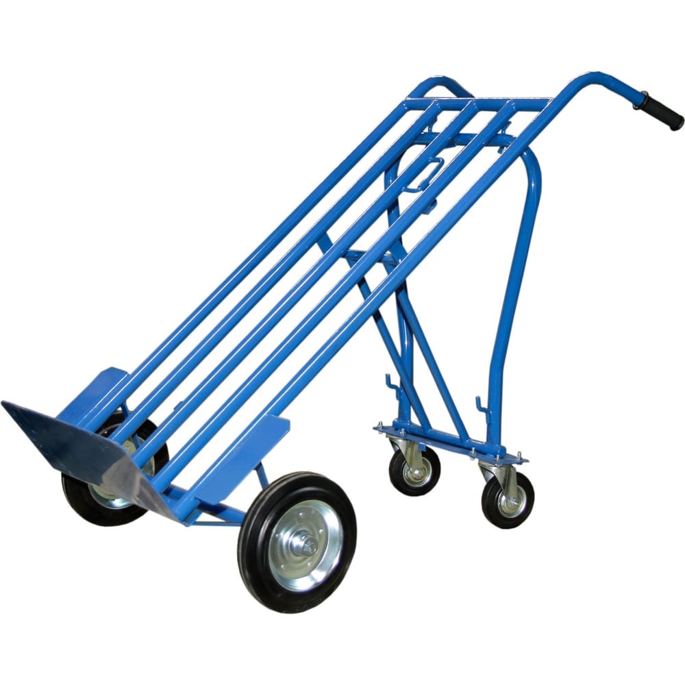 Тележка Стелла-техник специальная трансформер, КГК-350-И используется для перевозки различных грузов, вес которых не превышает 350 кг. Совмещает в себе преимущества горизонтальной тележки (удобное перемещение мелких грузов), двухколесной наклонной тележки (перемещение крупных предметов) и платформенной горизонтальной тележки (перемещение нескольких вещей). Полностью стальная конструкция стойка к высоким нагрузкам и частично защищает груз от повреждений.