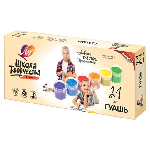 Гуашь ЛУЧ "Школа творчества", 21 цвет по 20 мл, без кисти, картонная упаковка, 29С 1755-08